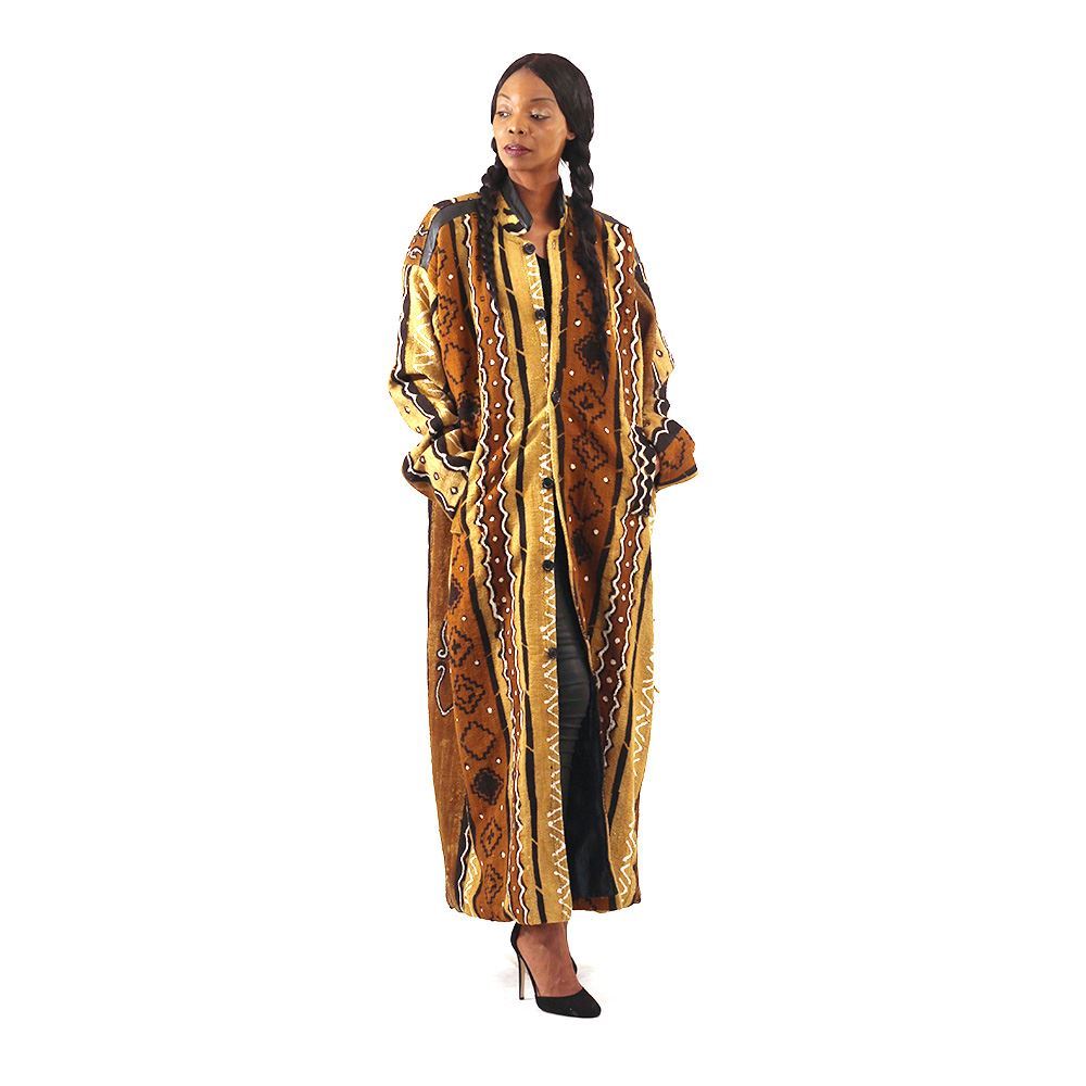 Full-Length Mud Cloth Coat: Alt Collar - Kushiaa